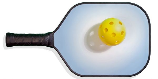 A pickleball paddle is smaller than a tennis racquet but larger than a ping-pong paddle. Paddles are made from wood or lightweight composite materials. A pickleball is a hard plastic ball with round holes, similar to a wiffleball. At FPC, we provide paddles and pickleballs to our members and guests.